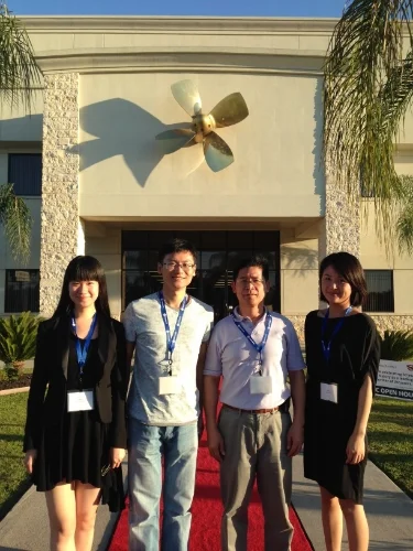 Two guests with Mr. Jim Li, CEO, and Ms. Yiyi Liu, Sales and Marketing Lead of OffshoreTech China